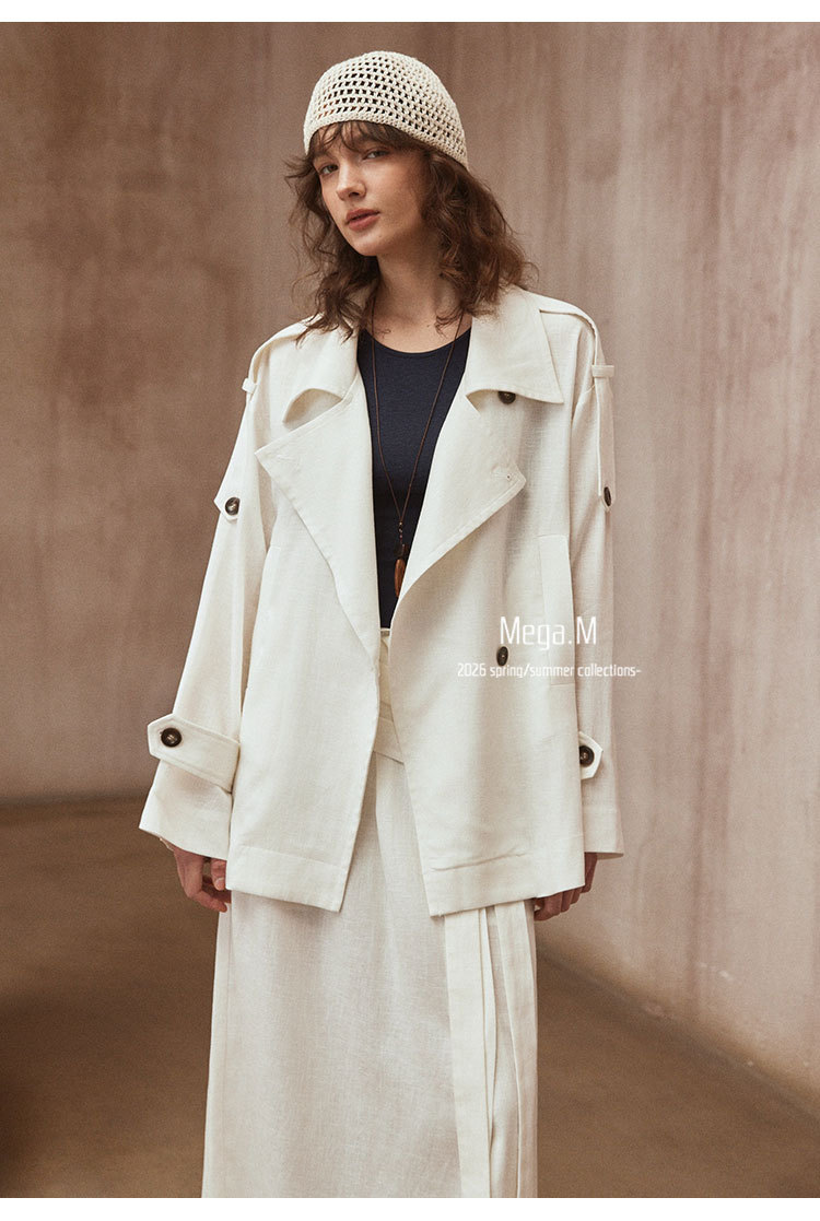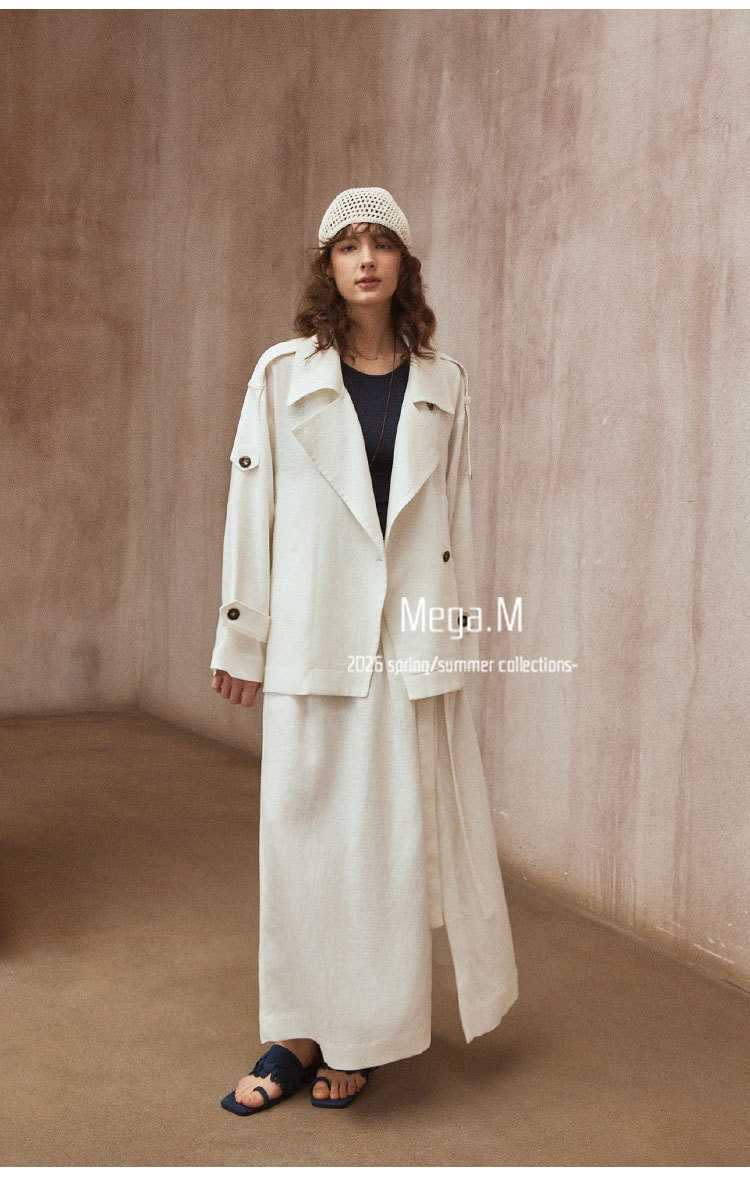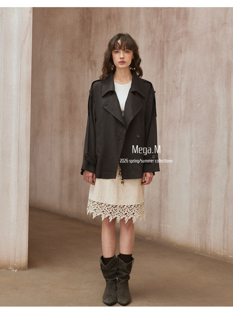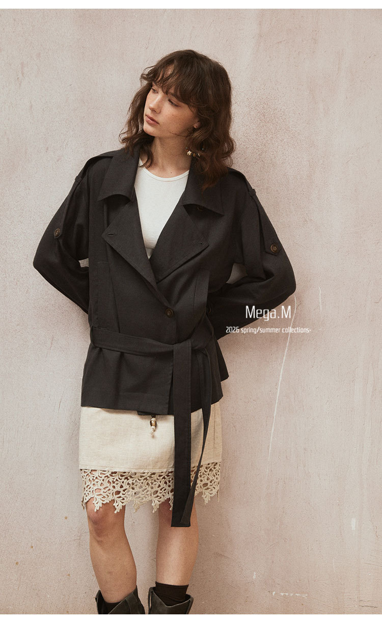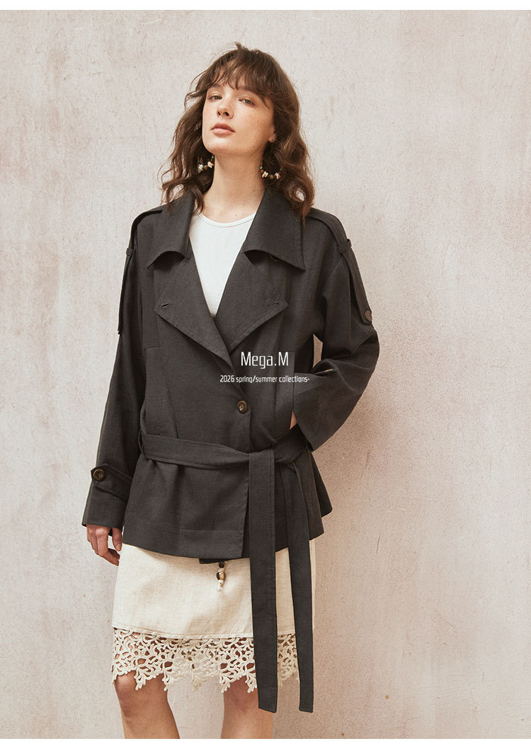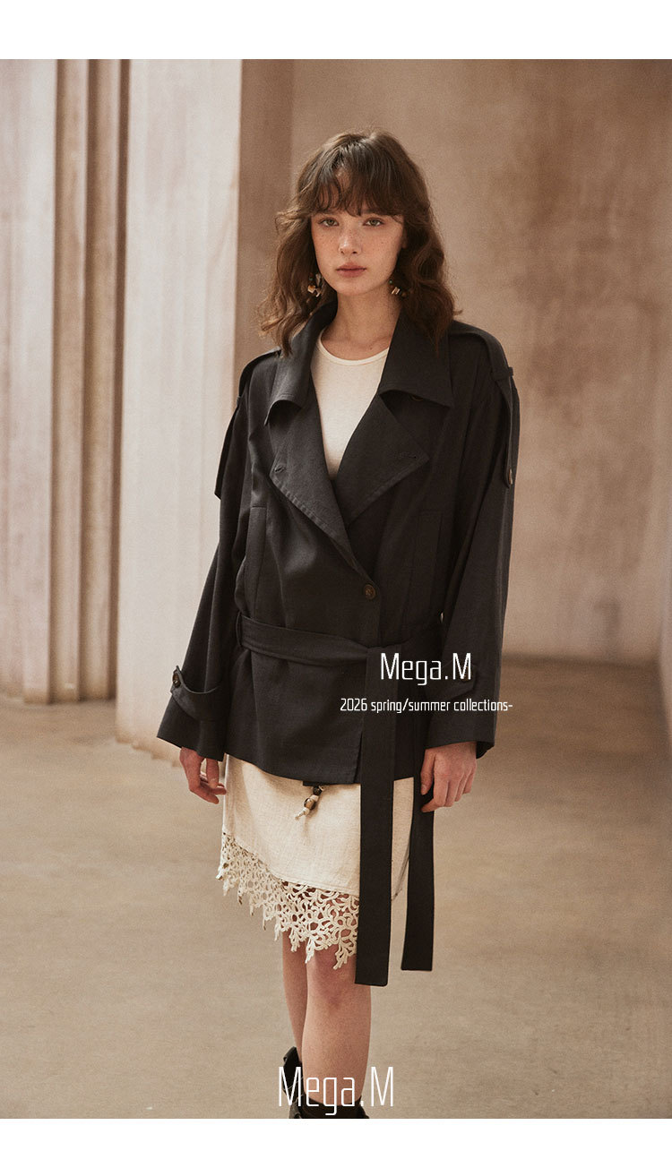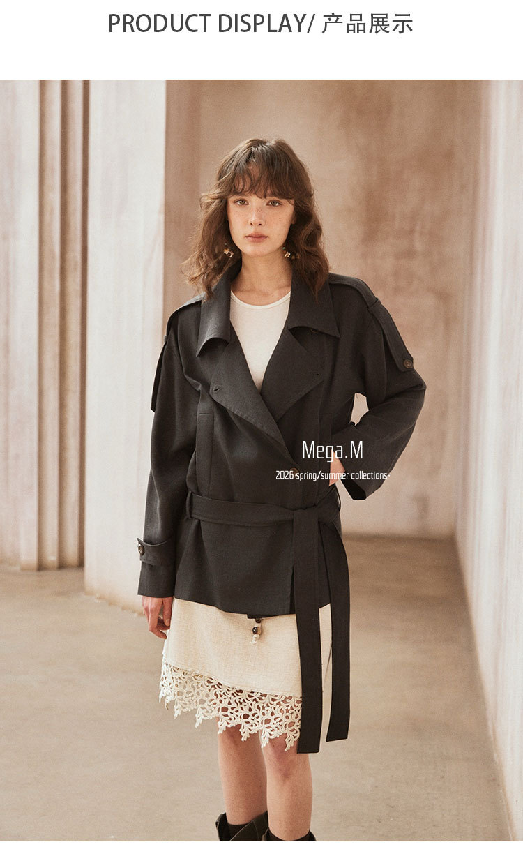 Mega. M short long-sleeved trench coat women's clothing 2026 spring new Korean version lapel thin jacket 04014