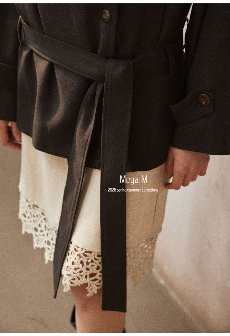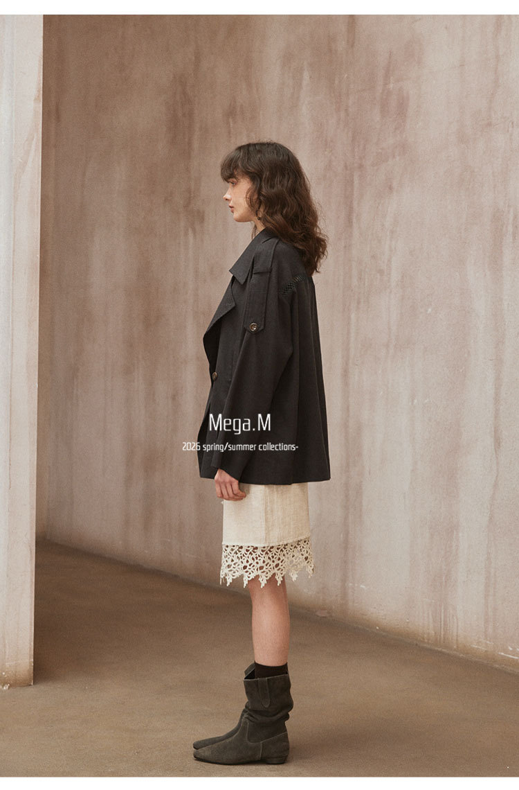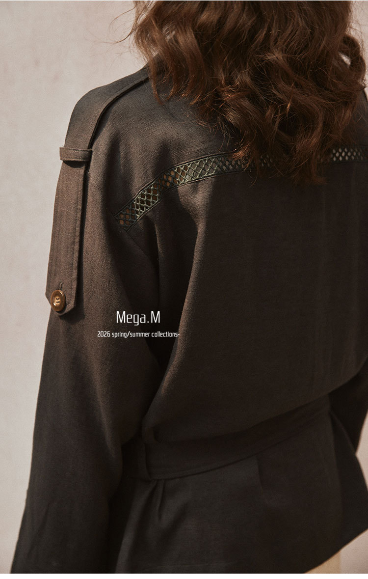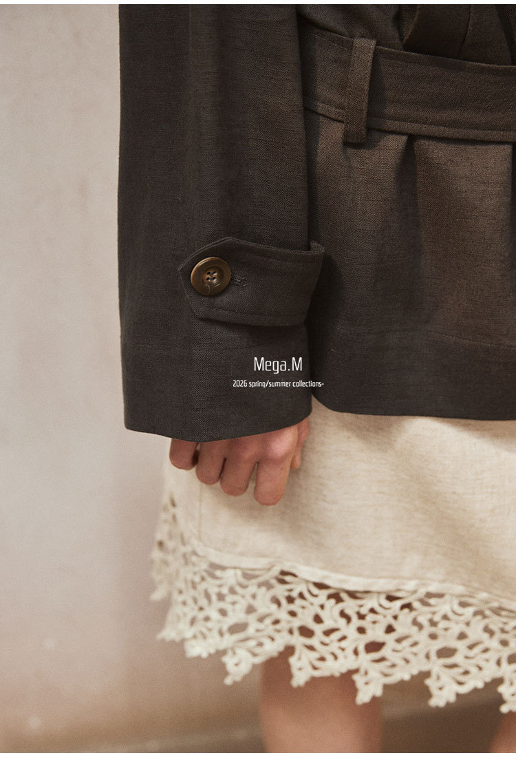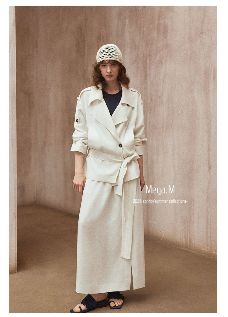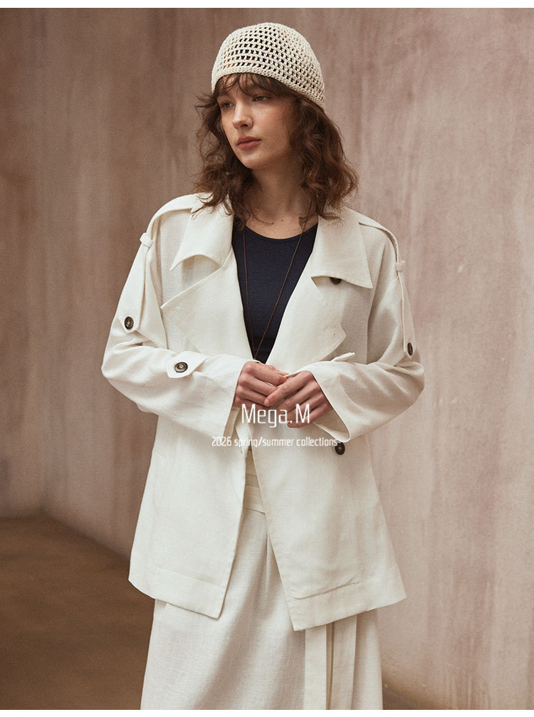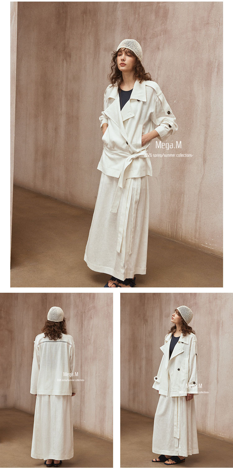Mega. M short long-sleeved trench coat women's clothing 2026 spring new Korean version lapel thin jacket 04014